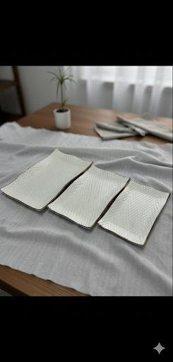 Luxury Wavy Edge Porcelain Platters - 3 Pcs Serving Set