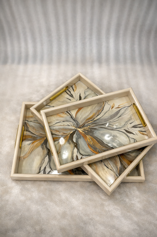 PREMIUM GOLD BORDER RESIN TRAYS – TEA/COFFEE & DESSERT – 3 PEICES SET