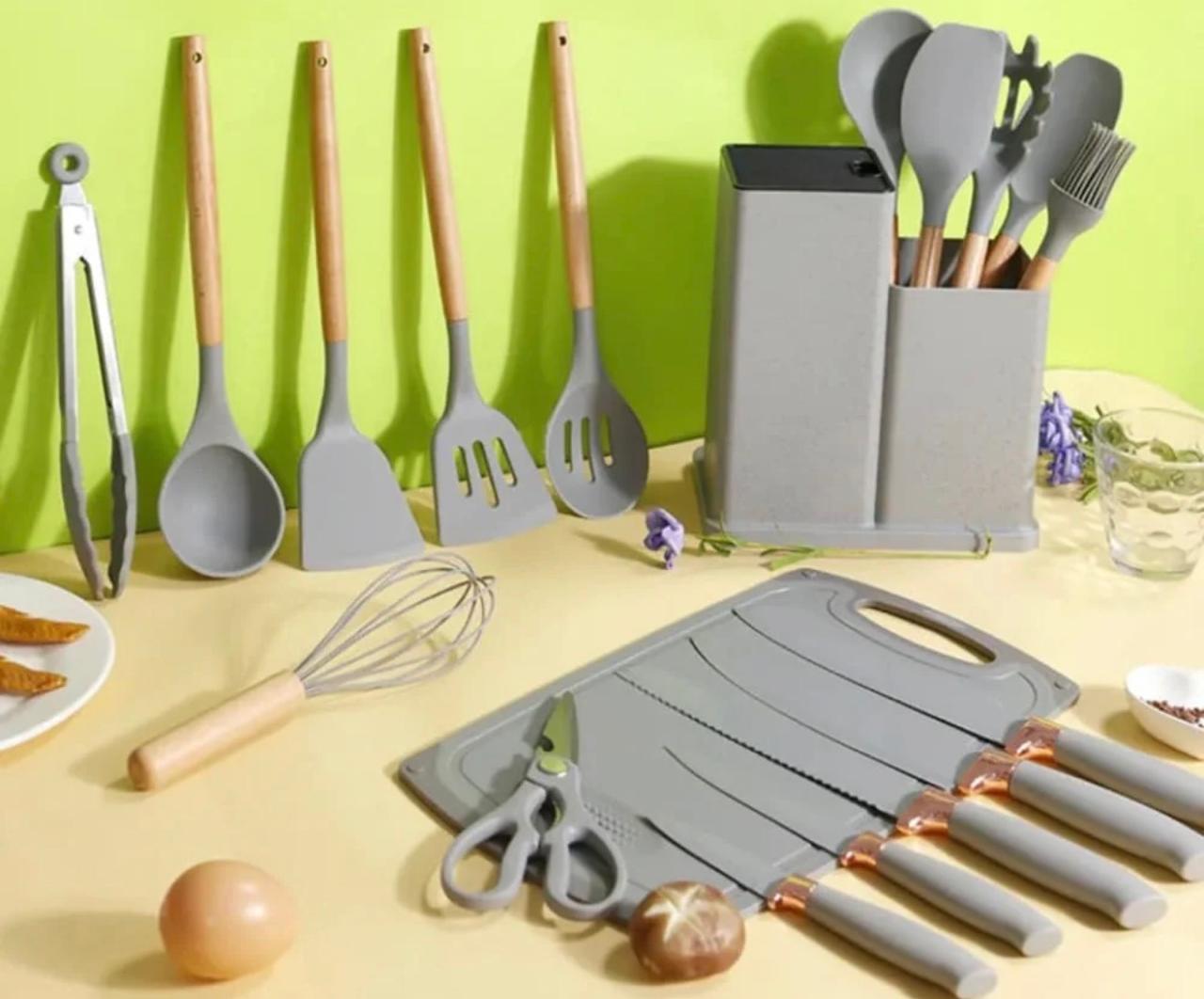 This 19-piece utensil set includes a variety of essential kitchen tools and a sharp knife set. Made from durable materials, these utensils offer convenience and ease in everyday cooking and meal preparation, ensuring a successful and efficient cooking experience. Perfect for any home cook or professional chef.
