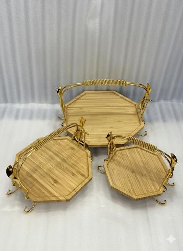 3 piece luxury wooden platters with gold handles