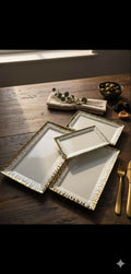 Elevate your dining setup with this Luxury 3-Piece Wavy Edge Porcelain Platter Set.Featuring a smooth glossy finish and elegant wave-shaped edges, these platters are perfect for serving snacks, desserts, starters, sandwiches, fruits, and tea-time treats. The timeless white design blends seamlessly with any table décor, making it ideal for both everyday use and special gatherings. Durable, stylish, and easy to wash — a refined addition to your serveware collection.