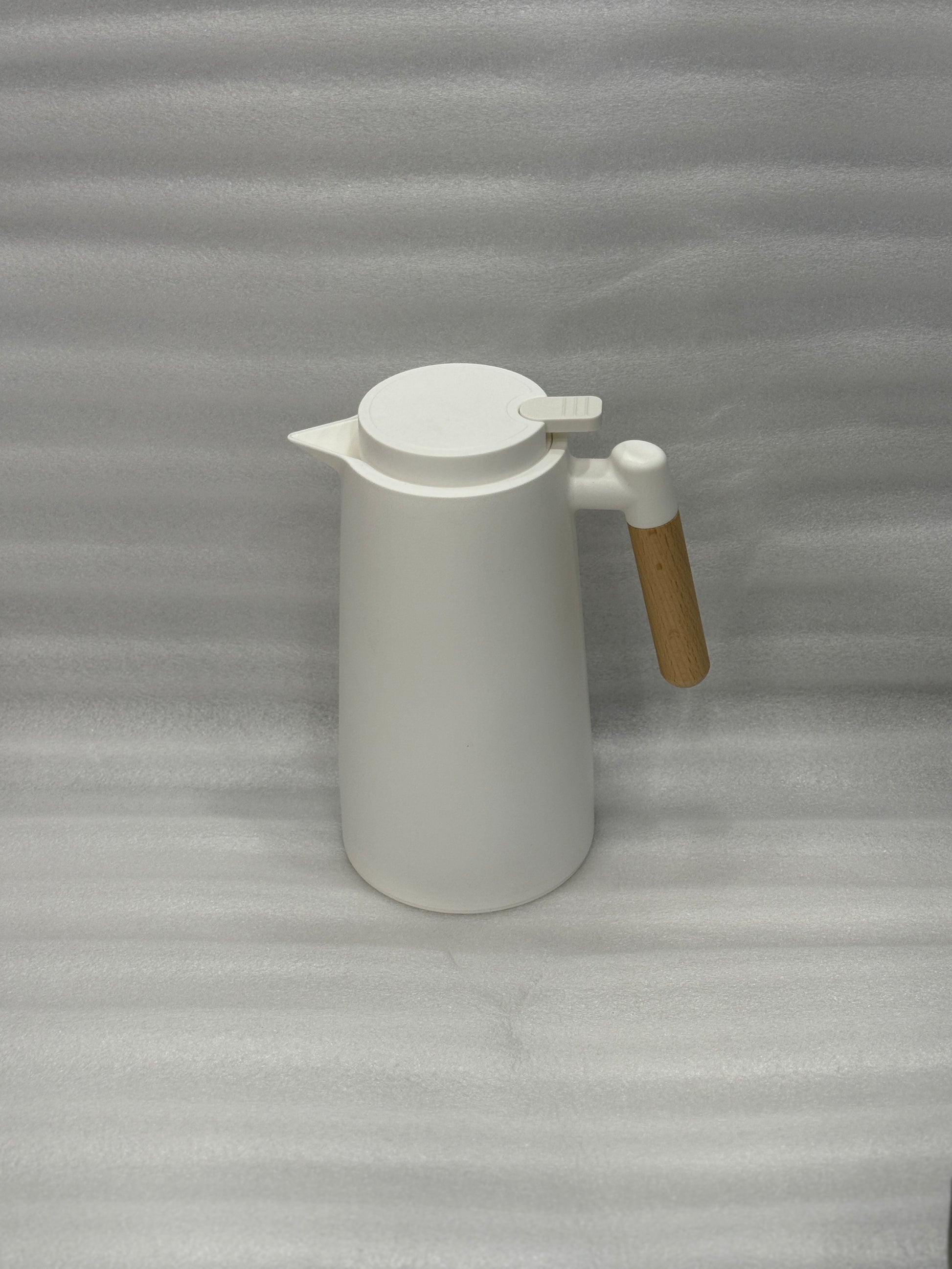 MODERN THERMAL JUG 1 LITRE – WHITE FINISH WITH WOODEN HANDLE