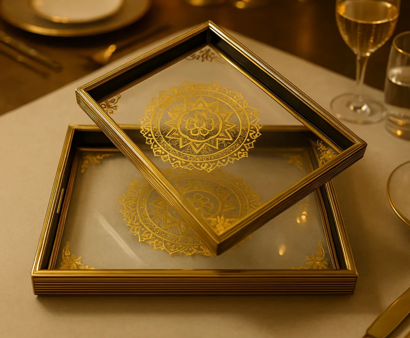 PREMIUM GOLDEN MANDALA DECOR TRAYS – RECTANGULAR 2-PIECE