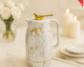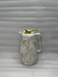 VACUUM INSULATED THERMAL KETTLE 1 LITRE – WHITE MARBLE GOLD WITH GOLD BIRD HANDLE LUXURY DINING