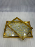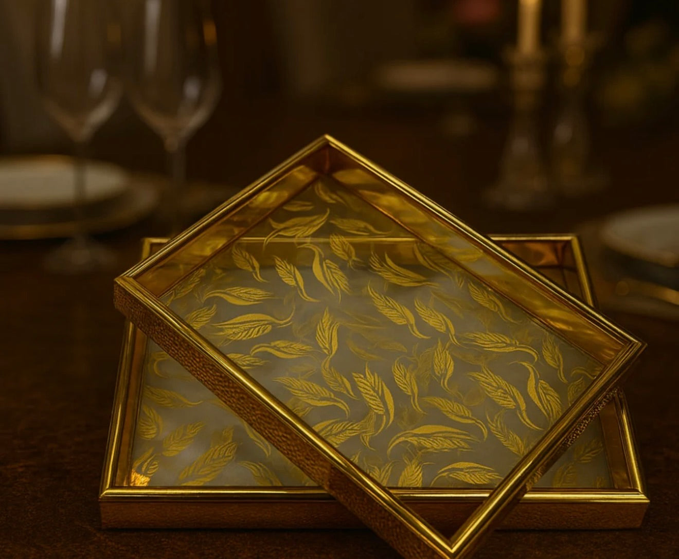 GOLD LEAF DESIGN RECTANGULAR TRAYS – LUXURY DINING TABLE TEA/COFFEE & DECOR DISPLAY – 2-PIECE SET