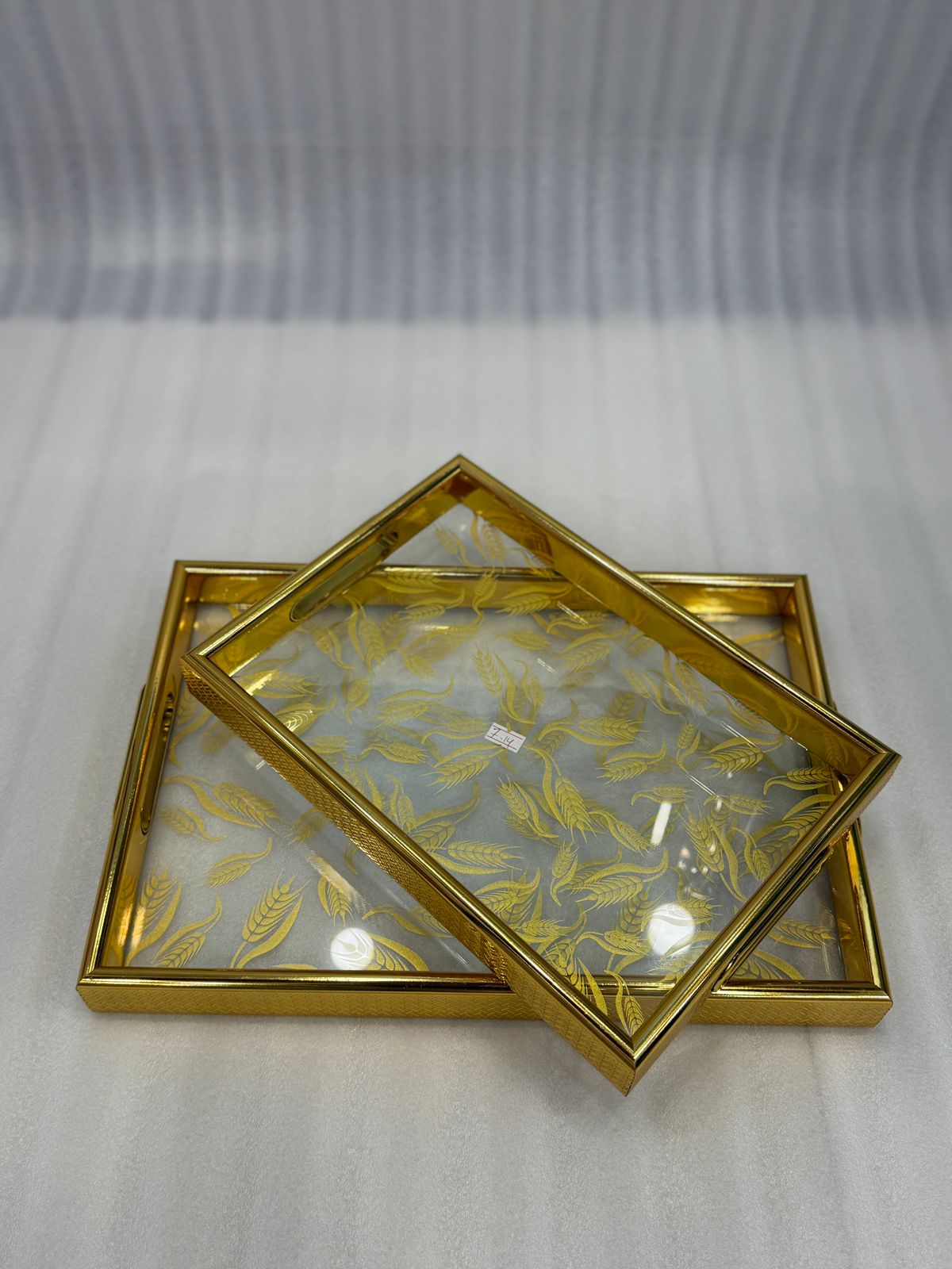 Add elegance and functionality to your serving experience with our Wooden Serving Tray set of 3 in Golden Color and Transparent Inner Area with Golden border Designed for both style and durability, these trays are perfect for serving tea, coffee, snacks, desserts, or full meals with ease.