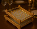 Add elegance and functionality to your serving experience with our Wooden Serving Tray set of 3 in Golden Color and Transparent Inner Area with Golden border Designed for both style and durability, these trays are perfect for serving tea, coffee, snacks, desserts, or full meals with ease.